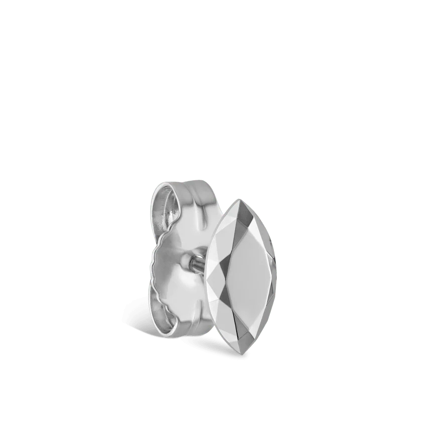 A 14k solid gold stud meticulously engineered with the faceting of a marquise cut diamond. This 3D style captures the essence of its diamond counterpart, offering a modern alternative that allows for beautiful light reflection from all angles.