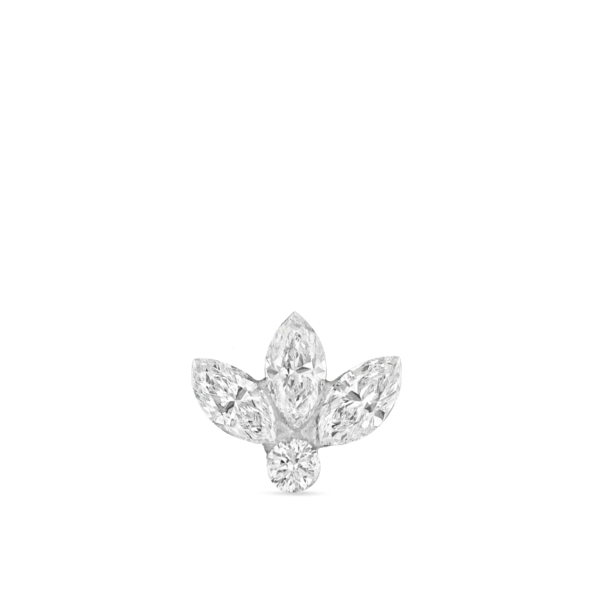 An iconic MARIA TASH design, this stud features three invisible marquise diamonds arranged in a lotus-inspired form. Crafted using our patented design, the setting eliminates visible bezels and prongs, placing full emphasis on the diamonds themselves and allowing them to appear weightlessly on the skin.