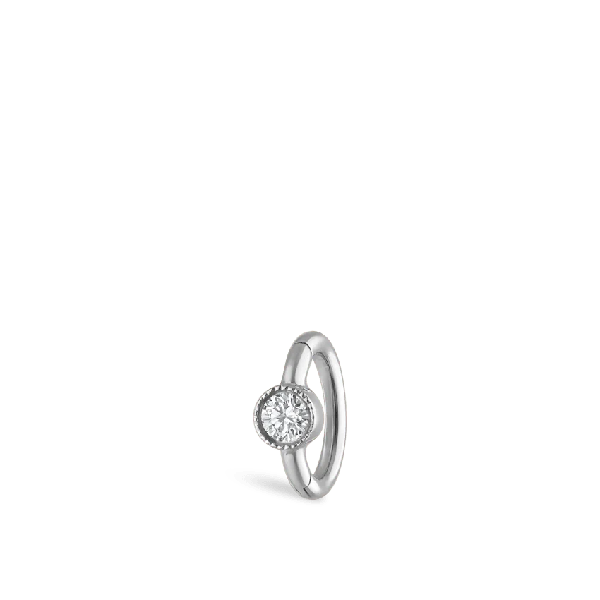 This elegant solid gold clicker ring features a diamond set in a scalloped bezel.